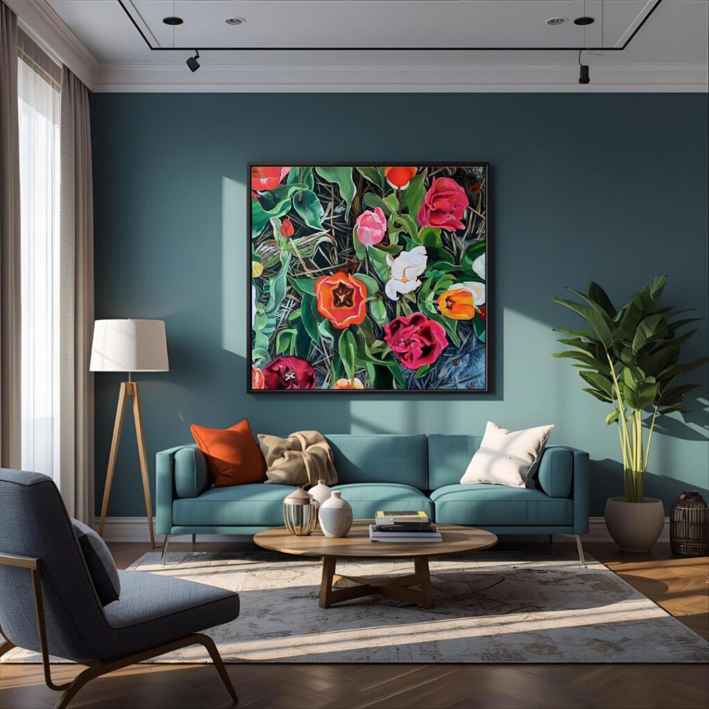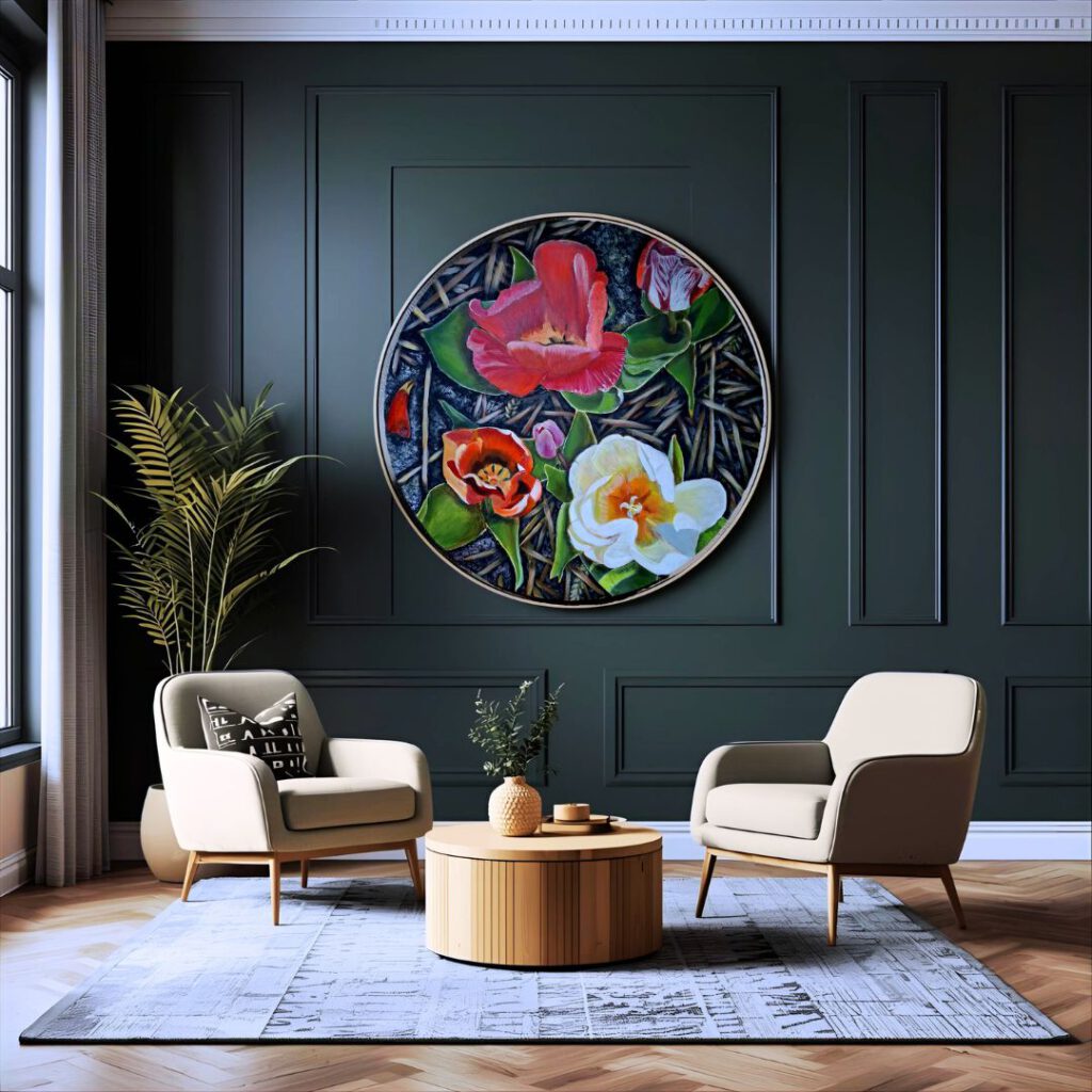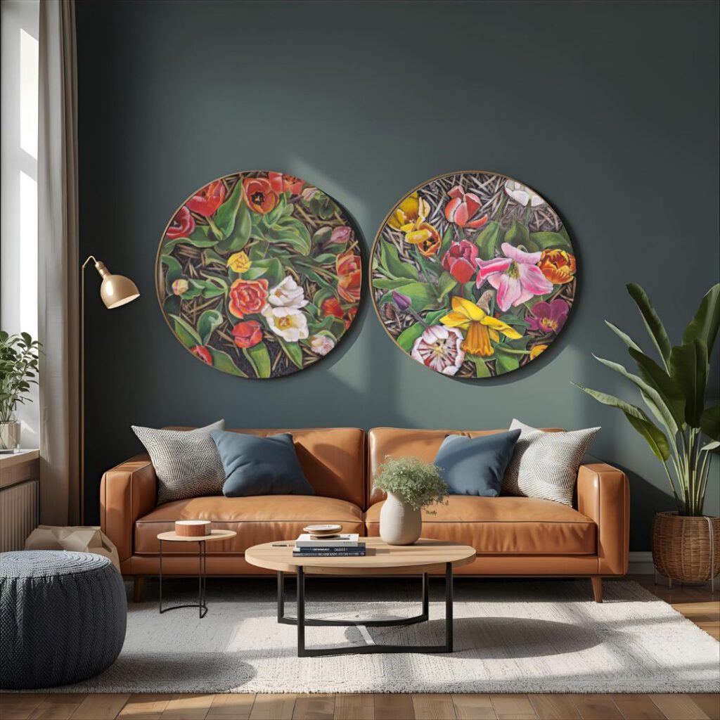 “Bekijk hoe mijn schilderijen tot leven komen in een interieursetting.”